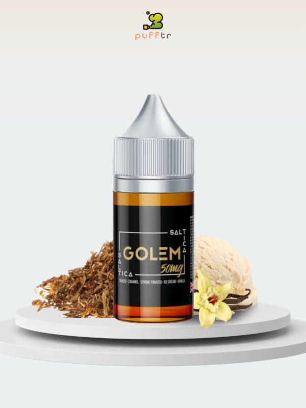 Saltica golem salt likit, 35mg ve 50mg olmak üzere iki farklı nikotin seviyesi bulunan, vanilyalı dondurma, karamel ve tütün aromalarının muhteşem uyumuyla birlikte kusursuz bir buhar deneyimi sunar. Saltica golem salt likit, Saltica markasının tütün serisine ait bir salt likittir. Saltica golem salt likit, gıda sınıfı tatlandırıcı olarak geçmektedir.